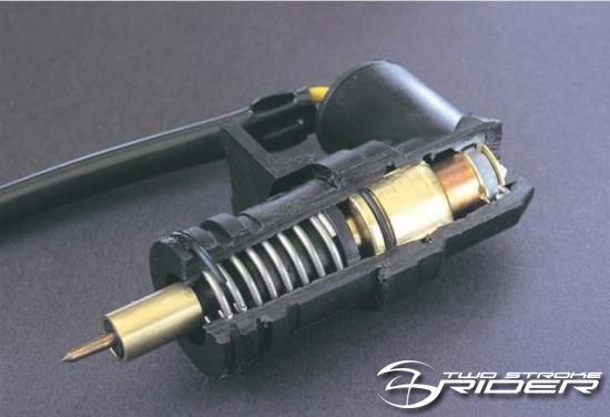 I korthet så fungerar automatchoken på det här viset: - när moppen är kall så släpper choken in extra bensin - när du startar moppen matas choken med 12 Volt "pinnen" går ut och stryper det extra bensinflödet - det är en "bimetallfjäder" som trycker ut pinnen (lilla fjädern syns på sista bilden) - efter ca 3-5 min är "pinnen" helt ute och choken därmed frånslagen