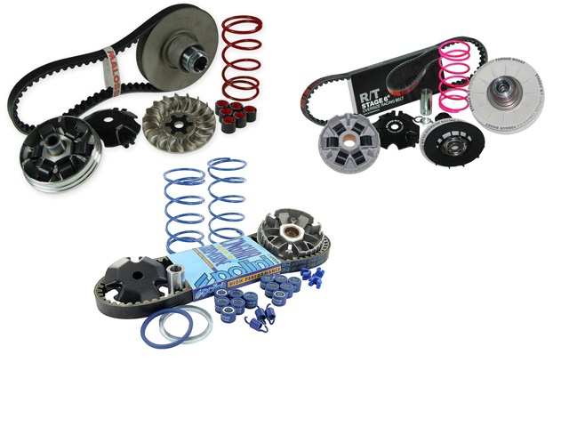 Sen finns det olika trimvariatorer man kan köra på. Original duger för urpluggade hojar och lite lättare effektrör. Men ska man köra på 70cc plus börjar man tjäna på att använda trimvariatorer. Beroende på tillverkare varierar diametern på skivorna och därmed toppfarten. Ju större remskiva, desto högre toppfart. Sen finns det så kallade oversizevariatorer, de har grymt mycket större remskivor än original och rekommenderas bara till tuffare setups som midrace och hyper!