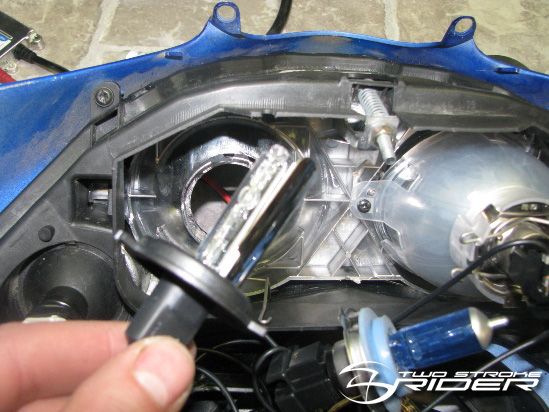 Notera att denna blåa lampa som jag plockar ur är "Xenon liknande" men inte på något sätt kan jämföras med äkta Xenon vad gäller ljusstyrka.