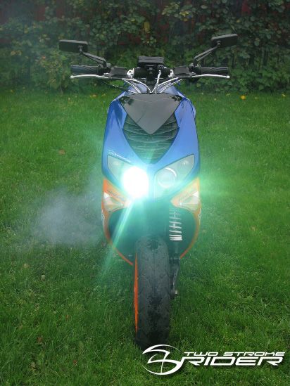 Som du kanske märkt på din scooter så varierar ofta halogenlampornas ljusstyrka med varvtalet detta slipper du med Xenonlampor.